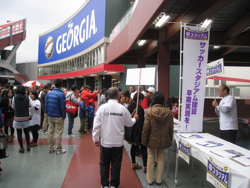 マツダスタジアムのコンコースではサッカースタジアム建設の署名活動も行われた