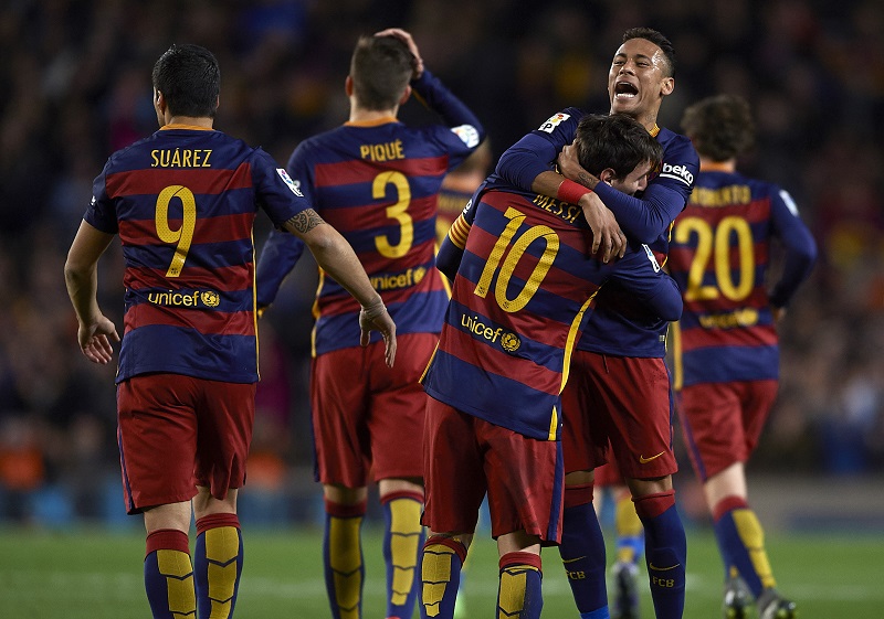 ゴールを祝うメッシ(10番)とネイマール(右) [写真]=Getty Images