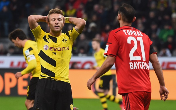 レヴァークーゼン戦で頭を抱えるインモービレ [写真]=Bongarts/Getty Images
