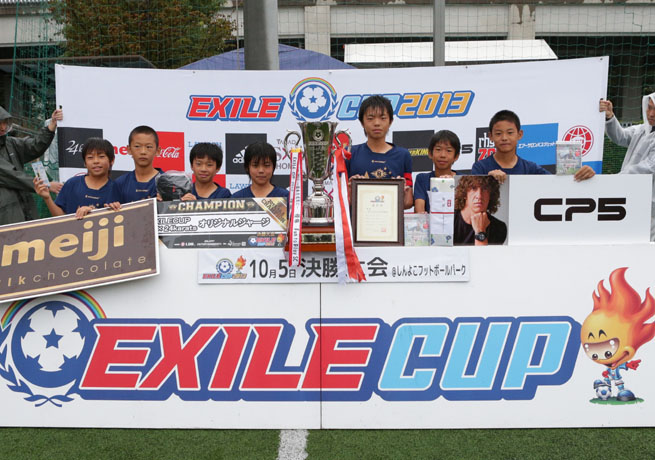 10月5日、今年で4回目を迎えたEXILE CUP 2013の決勝大会が、神奈川県のしんよこフットボールパークで行われた。あいにくの雨模様の中、予選大会を勝ち抜いた9チームによる熱戦が繰り広げられた。