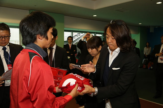 試合前には、大会アンバサダーの元日本代表・中山雅史氏と元日本代表・北澤豪氏が両チームを激励。優勝決定戦で着用する特別ユニフォームを贈呈するとともに、気合を注入して決戦に向けた雰囲気を盛り上げた。