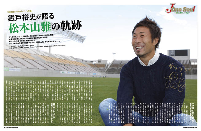 そして昇格決定日となったアビスパ福岡戦で熱い涙を流した鐡戸裕史選手は、「自分が3カテゴリーも昇格を経験できたのはホントに幸せなこと」と北信越リーグ時代からJFL、J2、そしてJ1へと戦い続けた松本山雅の軌跡を振り返ってくれました。また、福岡戦後に選手生命を懸けて今シーズンを戦った背番号“3”、田中隼磨選手の独占手記を公開します。地元・松本のために、親友松田直樹さんのために駆け抜けた今シーズンと今後への思いとは――。