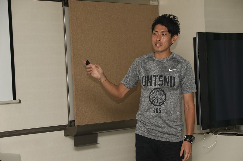 スプリントコーチとして、ブンデスリーガのマインツに所属するFW武藤嘉紀、浦和レッドダイヤモンズのMF宇賀神友弥、MF梅崎司、MF関根貴大、DF槙野智章、FW李忠成をはじめ、川崎フロンターレのFW大久保嘉人、MF大島僚太、DF谷口彰悟などの個人指導も行う秋本氏。今回は日テレ・ベレーザの選手たちからの強い希望によりセミナーが開催された。