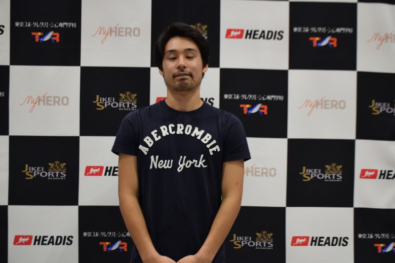 デモプレーが終わるとイベントは体験会に移行。他メディアとのポジション争いを制したMは早速、ヘディスに初挑戦した。選手に教わりながら、投げられたボールをヘディング! サッカー経験もあるので意外とうまくボールを返すことができた。ゴム製のボールは柔らかく、そこまで力はいらない。サーブ、ラリーと徐々にレベルを上げていき、最後にはヘディングでカーブをかける余裕も。「優勝しちゃうんじゃない?」と先輩に声をかけられ、まんざらでもない表情のM。ふつふつとわき上がる自信を胸に、次の方にバトンタッチした。