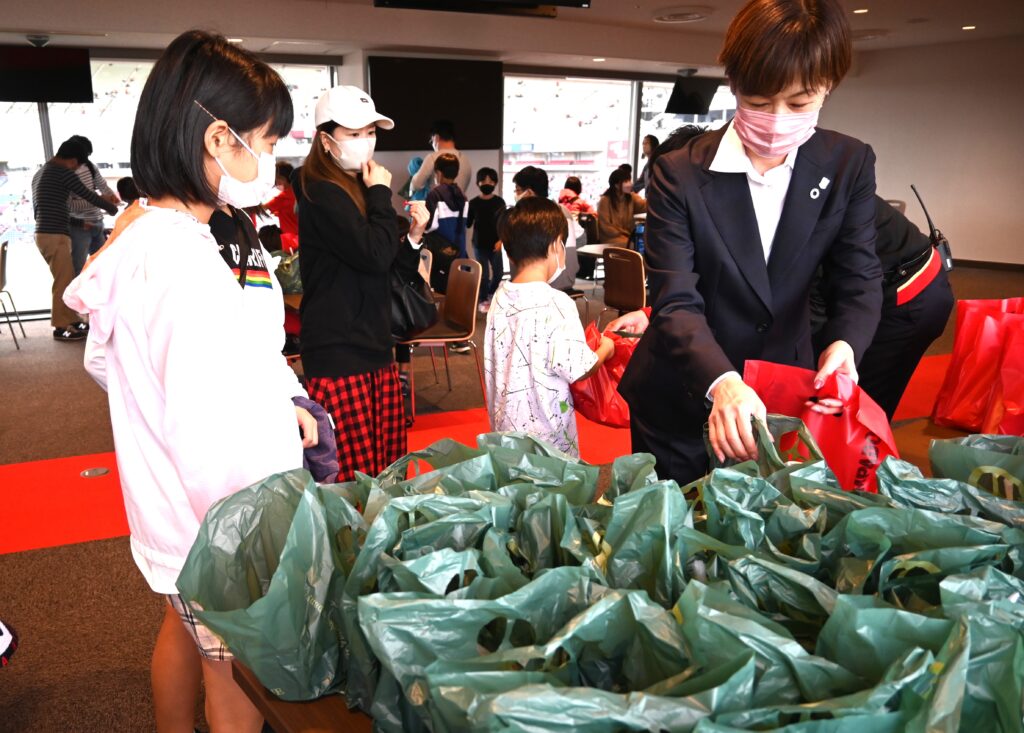 子ども食堂ネットワーク代表理事を務める東海林尚文氏によると、同ネットワークは埼玉県内を15のエリアに分けて活動し、全部で約180団体が属している。今回はその中で埼スタに近いエリアの利用者を対象に参加希望者を募ったところ、3日間で120人の枠が埋まる人気だった。10月8日の試合当日はピッチを見下ろすビューレストランでパンの贈呈式が行われ、その後、スタンドに移動しての試合観戦となった。