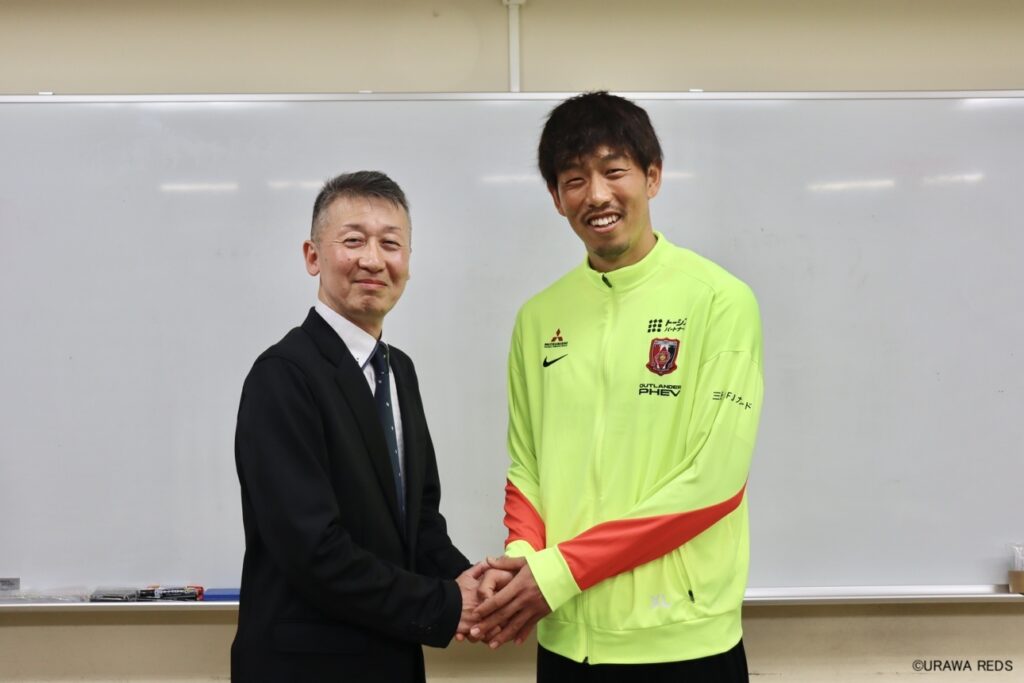 さいたま市緑区の県立浦和特別支援学校を訪問した浦和レッズの牲川歩見[写真]=浦和レッズ