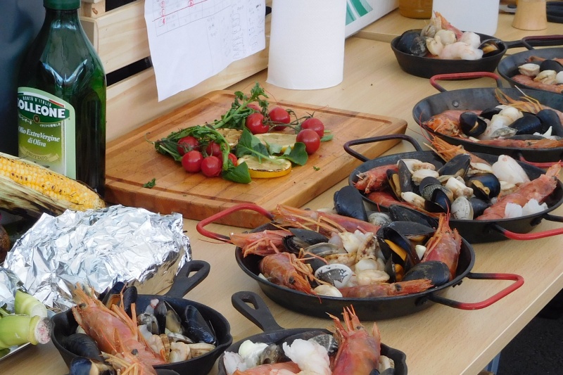 夕食時には、アウトドアクッキング体験としてセレッソ大阪特製メスティンを使った炊飯体験を行ったあと、バーベキュー料理では海鮮たっぷりのアヒージョ、ポトフ、思わず写真に収める人が続出した牛肉の希少部位であるザブトンなどを提供。各テーブルに分かれ、お肉や野菜などに舌鼓を打ちつつ、スタジアムライティングショーも楽しんでいた。