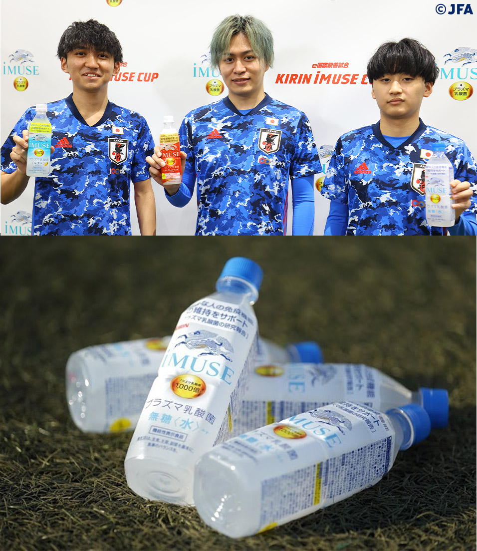 特別協賛という形でこの大会をサポートするのは、サッカー日本代表のオフィシャルパートナーであるキリンだ。同社は2020年3月のサッカーe日本代表発足当初から、目の疲労感を軽減するキリンの独自素材「KW(ケーダブリュ)乳酸菌」を配合した機能性表示食品『iMUSE eye KW(イミューズ アイ ケーダブリュ)乳酸菌』をサッカーe日本代表公式機能性表示食品として提供し、選手たちを“体の内側”からサポートしてきた。