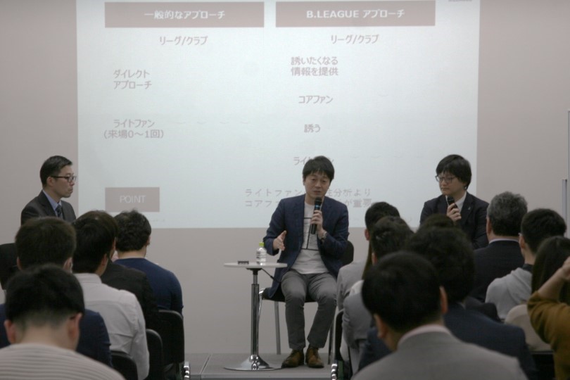 セミナーは二部制で開催。第一部では葦原氏から実際にBリーグで行ってきた戦略について説明。第二部ではゲストとして株式会社Jリーグデジタルの杉本渉氏も登場し参加者からの質問を元にトークディスカッションが行われた。