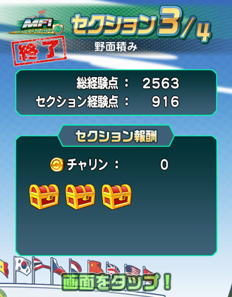 見よ、この順調な仕上がり。セクション1終了時点で経験点756。回収したコツも「ビハインド◯」、「ドリブラー◯」、「パス◯」、「マーク外し」、「ムード◯」と実に香川的! よし、クニさんに揺さぶりをかけよう!