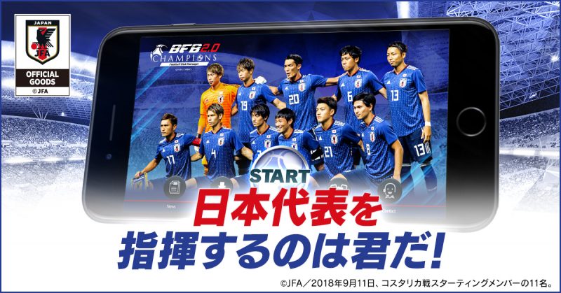 思考型シミュレーションサッカーゲーム『BFBチャンピオンズ2.0~Football Club Manager~』は、2018年11月27日(火)より、サッカー日本代表の選手たちがゲーム内に登場します。今回は、2018年9月11日(火)のコスタリカ戦で選出された新生日本代表のメンバーを含めた、41名の選手が獲得可能になります。また、ゲーム内大会イベント「代表戦」のリニューアルなどを行う大型アップデートを実施します。