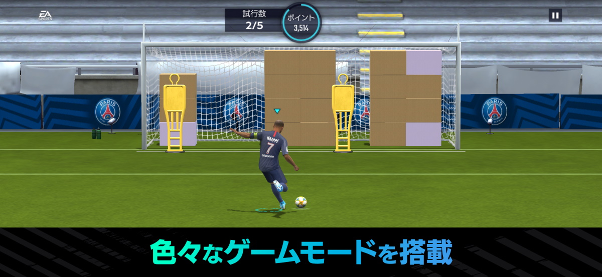 『FIFA MOBILE』では、本物のクラブや選手を使って自分だけのオリジナルチームを作り、11 対 11 のオンライン対戦はもちろん、ゴール数を競う「VS アタック」、昇格・降格ありの本格的なリーグ戦を体験できる「シミュレーションリーグ」、各種スキルゲームなど、お好みに合わせて多彩なコンテンツをお楽しみいただけます。