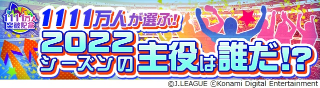 株式会社コナミデジタルエンタテインメントは、モバイルゲーム『Jリーグクラブチャンピオンシップ』(以下、『Jクラ』)の登録会員数が1111万人突破したことを記念したキャンペーンを開始したと発表した。