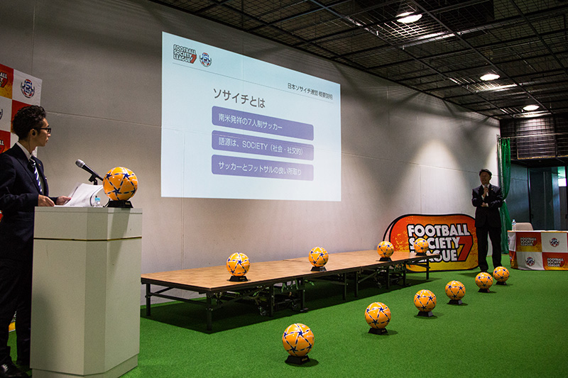 前日の激しい風雨も止み、春先並みの暖かい日差しが降り注いだ12月23日、日本ソサイチ連盟(東京都多摩市)は、来年1月に開幕を迎える7人制サッカーのリーグ戦『FOOTBALL 7 SOCIETY 関東リーグ』の記者発表会を味の素スタジアムで行った。