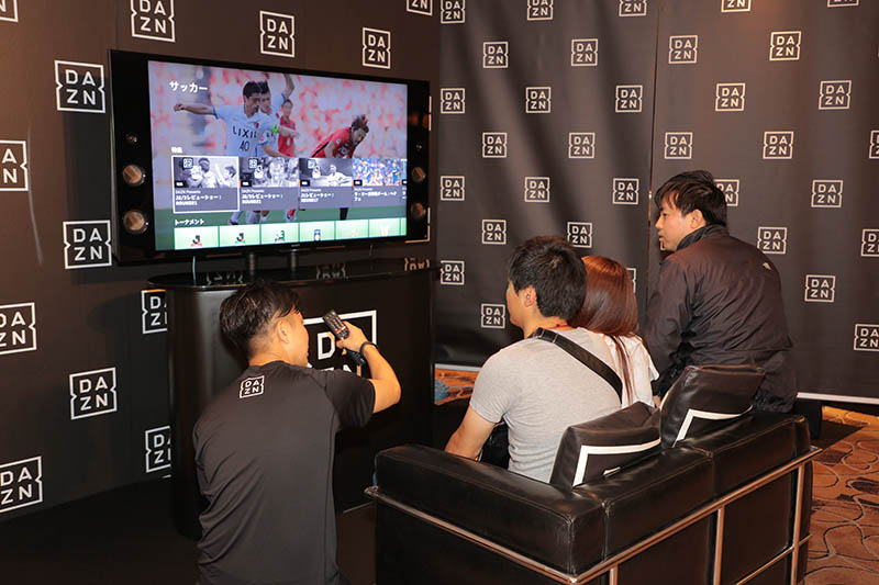 入団会見が行われた会場では、DAZNの大型視聴ブースが設けられ、ファンや取材陣が体験した。