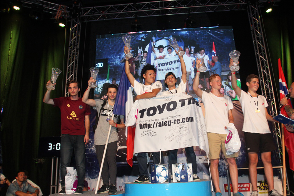 Super Ballは、世界55カ国、250名以上の出場者がフリースタイルフットボールの「技」と「パフォーマンス」を競い合う大会で、同メンバーは2015年に二人のプレイヤーがペアを組んでパフォーマンスを披露する“Double Routine”(ダブルルーティン)と言われる種目で、二人の息の合ったパフォーマンスと音楽との融合性が評価されアジア人「初」となる世界チャンピオンに輝いた。