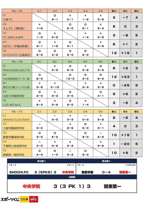 試合会場となったZOZOPARKがある千葉県の「敬愛学園」「中央学院」、埼玉の強豪である「正智深谷」、そしてつい先日の第96回全国高校サッカー選手権大会にも出場し、いわゆる“選手権メンバー”を擁する「関東第一」。そんな中「正智深谷」「関東第一」との連戦では、打ち合いの接戦を2試合連続のPK戦の末に勝利した『中央学院』が2018大会のチャンピオンに輝いた。