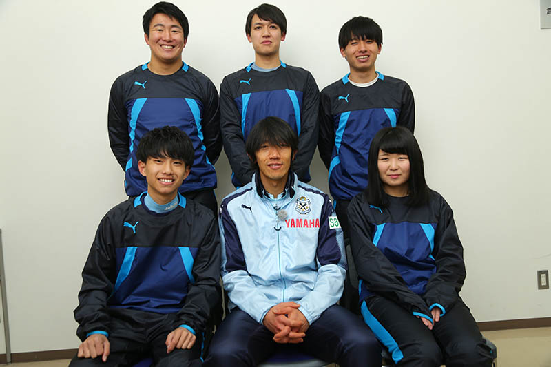 そんな中村選手のFKを阻止すべく、約4,600倍という超難関倍率を突破したのが、(写真左から)中村選手と同じ名前を持つ中村俊介さん、唯一の女性参加者・千葉真希さん、ジュビロ磐田の育成組織で育った松本大瑚さん、大学ラグビーで鍛えた“動く壁”の鈴木隆文さん、そして中村選手の高校の後輩で身長190㎝の伊藤大地さんの5人。