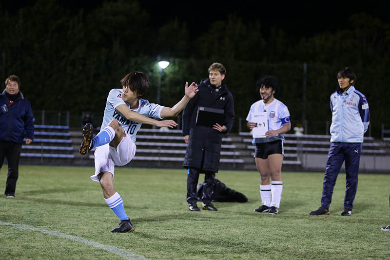 年が開けた1月某日、磐田スポーツ交流の里 ゆめりあ球技場に5人の精鋭が集結した。今回のバイト代は日給5万円。さらにディエゴ・加藤・マラドーナさんと中村選手で行われるFK対決で、FKを1本阻止するごとにインセンティブとしてバイト全員に500円の報酬が加算されていく。つまり、最多で2人合計10本のFKを阻止することができれば、500円×10本=5000円が日給とは別に支給されるというのだ。