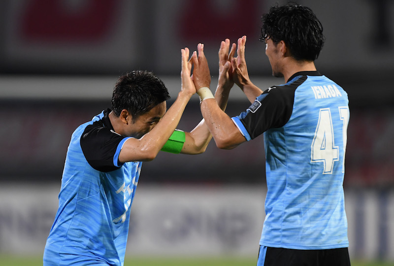 ゴールを喜ぶ小林悠(左)と家長昭博(右) [写真]=Getty Images