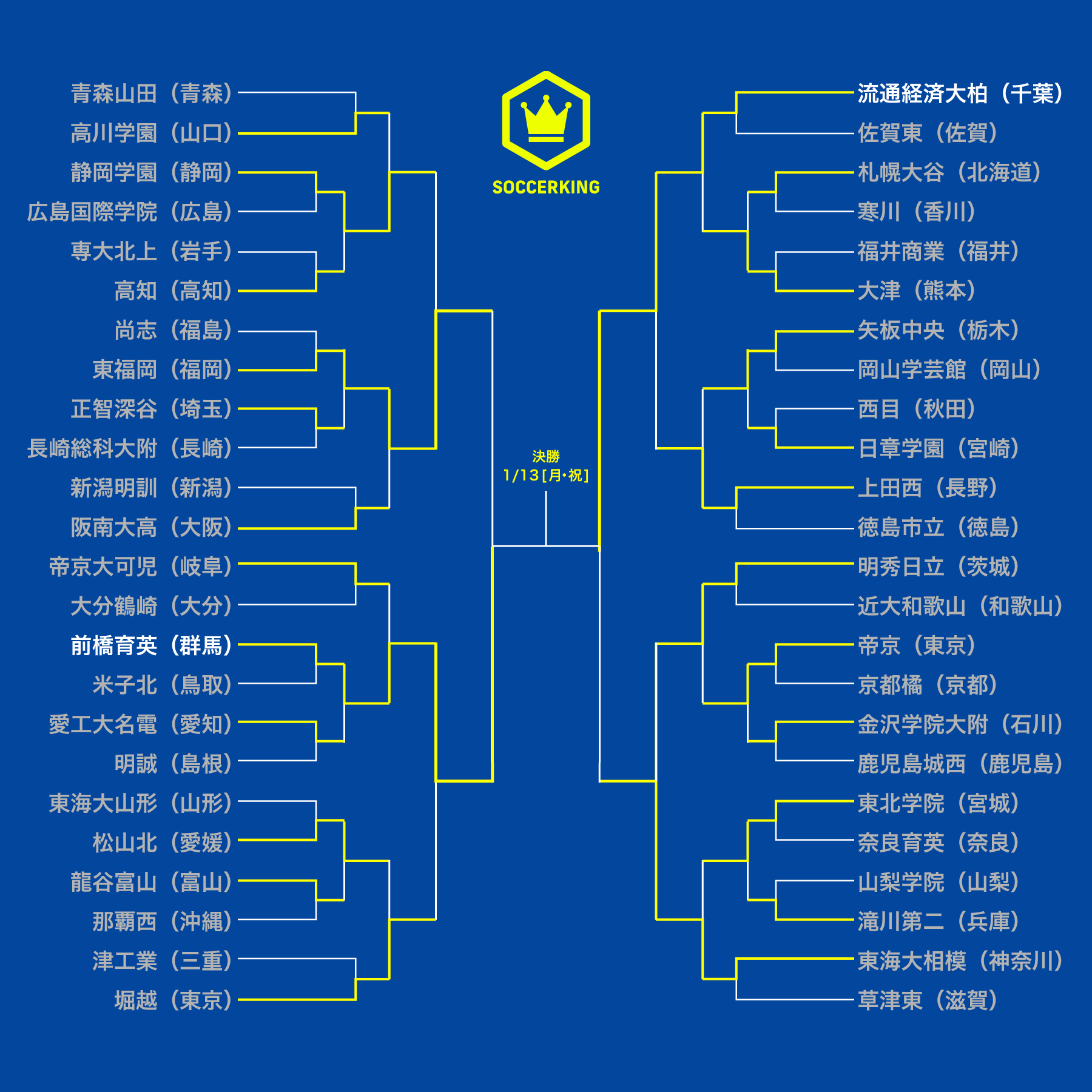 | 47 | 2025年1月13日 14:05 | 前橋育英(群馬) 1-1(PK:9-8) 流通経済大柏(千葉) | 国立競技場 |