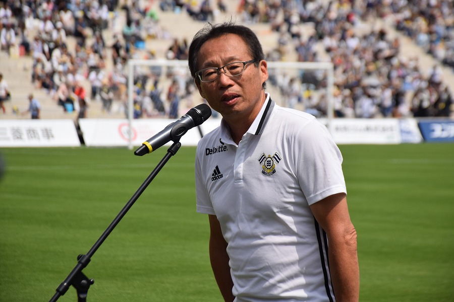 キックオフ前に挨拶をした岡田オーナー
