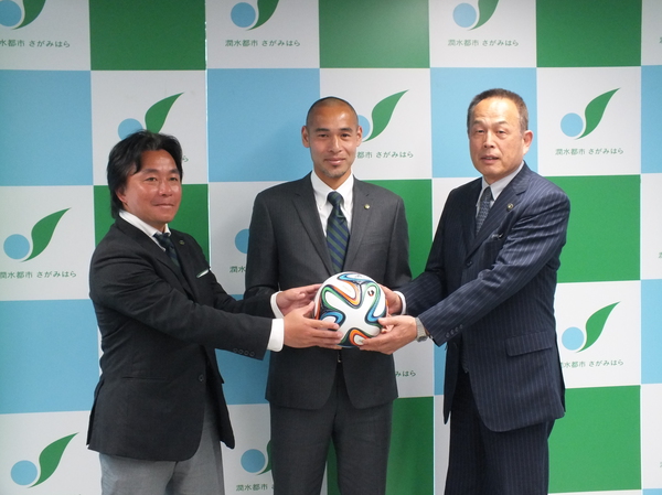 会見前には加山俊夫相模原市長を表敬訪問し、相模原加入を木村哲昌監督らとともに報告した。