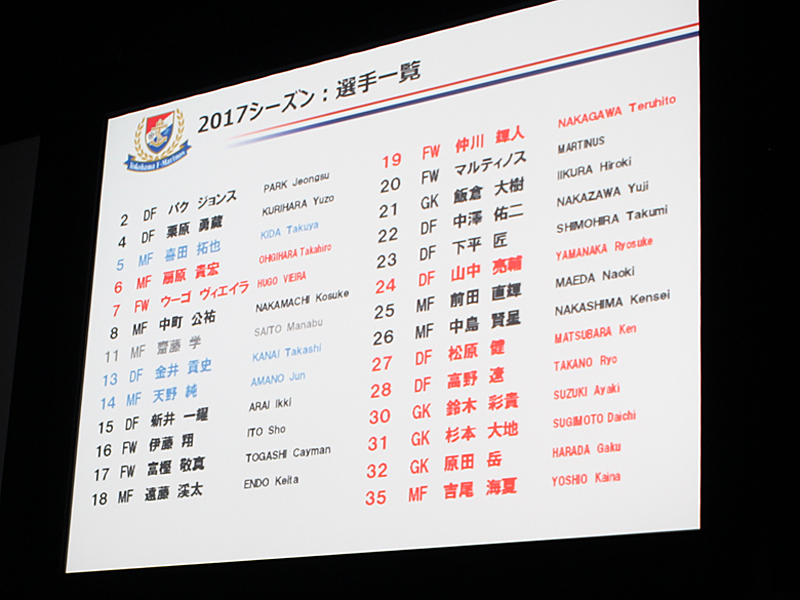 横浜F・マリノスは15日、日産グローバル本社「日産ホール」にて「2017 新体制発表会」を開催した。
