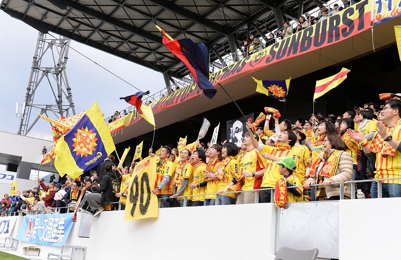 黄色を基調としたユニフォーム姿であふれる試合当日。ホームゲーム初勝利を挙げた3月26日のセレッソ大阪U-23戦の様子です。