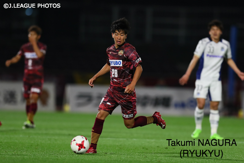 ところが、キャプテンにも指名された昨年の3年時はインターハイ、選手権と共に予選で早期敗退。全国の舞台へ帰還することは叶いませんでした。そして、今年の3月、練習参加をきっかけに琉球への加入が決定すると、いきなり「デビューするなら点は取りたいなと思っていた」というG大阪U-23とのJ3デビュー戦で2ゴールの大活躍。「フィジカル的な部分ではまだまだ課題がありますけど、他の選手と絡みながら、自分のプレーは少しずつ出せているかなと思います」と話すなど、徐々にプロとしての自信を深めているのは間違いありません。