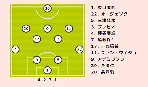 リーグ前節のC大阪では後半に追いつかれ、ACL傑志戦は手痛い黒星を喫した。この悪い流れを払拭するためにも今節は勝利が必要である。