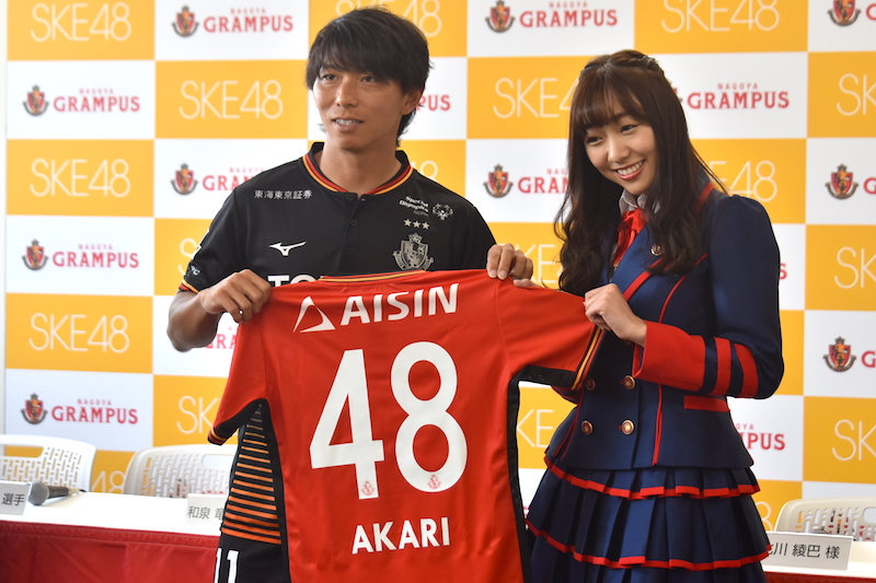 同日行われた記者会見には、名古屋から小西工己代表取締役社長、佐藤寿人、長谷川アーリアジャスール、和泉竜司が登場。SKE48からは須田亜香里さん、熊崎晴香さん、北川綾巴さんが出席した。小西社長は「地元名古屋のアイドルであるSKE48と共にグランパスを盛り上げていける、新たなコミュニケーションが始まることを嬉しく思います」とあいさつを行った。
