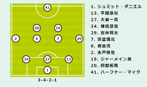山本康裕がアンカーを務め、3バックの右に位置していた高橋祥平が左にまわった。左アウトサイドは、アンカーだった宮崎智彦が本職を担うことになり、全体のバランスが良くなっている。