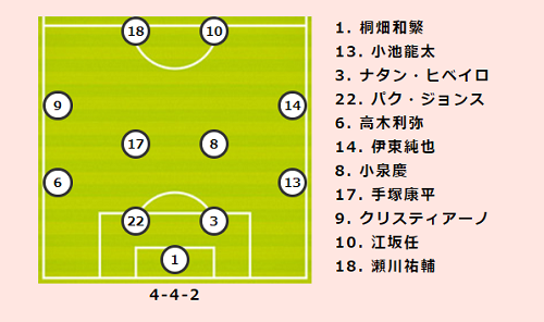 連敗がようやく止まり、リーグ再開後初勝利を挙げた。これまで連敗中には「攻撃イメージの共有ができていない」という言葉が聞かれたように攻撃の形を見出せなかったのだが、札幌戦ではビルドアップの入り口として中盤にリズムを生み出す手塚康平のパスや、江坂任と瀬川祐輔のコンビネーション、そこに伊東純也のドリブル突破が見事にかみ合い、得点自体は2点に終わったものの何度も決定機を作り出した。