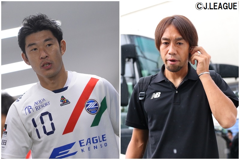 町田の土岐田洸平(左)と山形の本田拓也(右)は、法政大学時代のチームメイトだ [写真]=J.LEAGUE