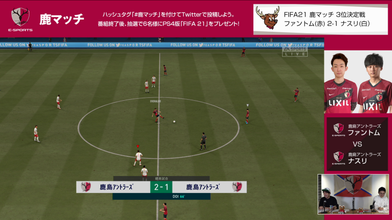 鹿島アントラーズが主催するサッカーゲーム「FIFA 21」を使用したeスポーツ大会『鹿マッチ』が23日に行われた。