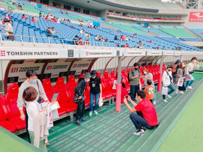 あえて試合日の設営物をそのまま生かしたことで、臨場感のあるイベントになりました。ベンチや階段の装飾を含め、通常のスタジアムツアーでは感じ取れない「試合そのもの」の空気の中で謎解きができたことで、浦和レッズのファン・サポーターの方以外にも楽しんでいただける構成になったと思っています。