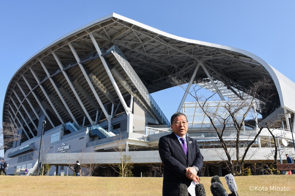 サンフレッチェ広島は今年2月8日に新スタジアムの指定管理者に内定。スタジアムが完成した12月28日、指定管理者として広島市から書類や鍵を引き受けた。仙田社長は、「とにかくまずはスタジアムを満員にしていく。そのムーブメントを作っていく」と力強く語りつつ、「広島の新しいランドマークとして試合がなくても楽しめる施設を目指します」と意気込んだ。