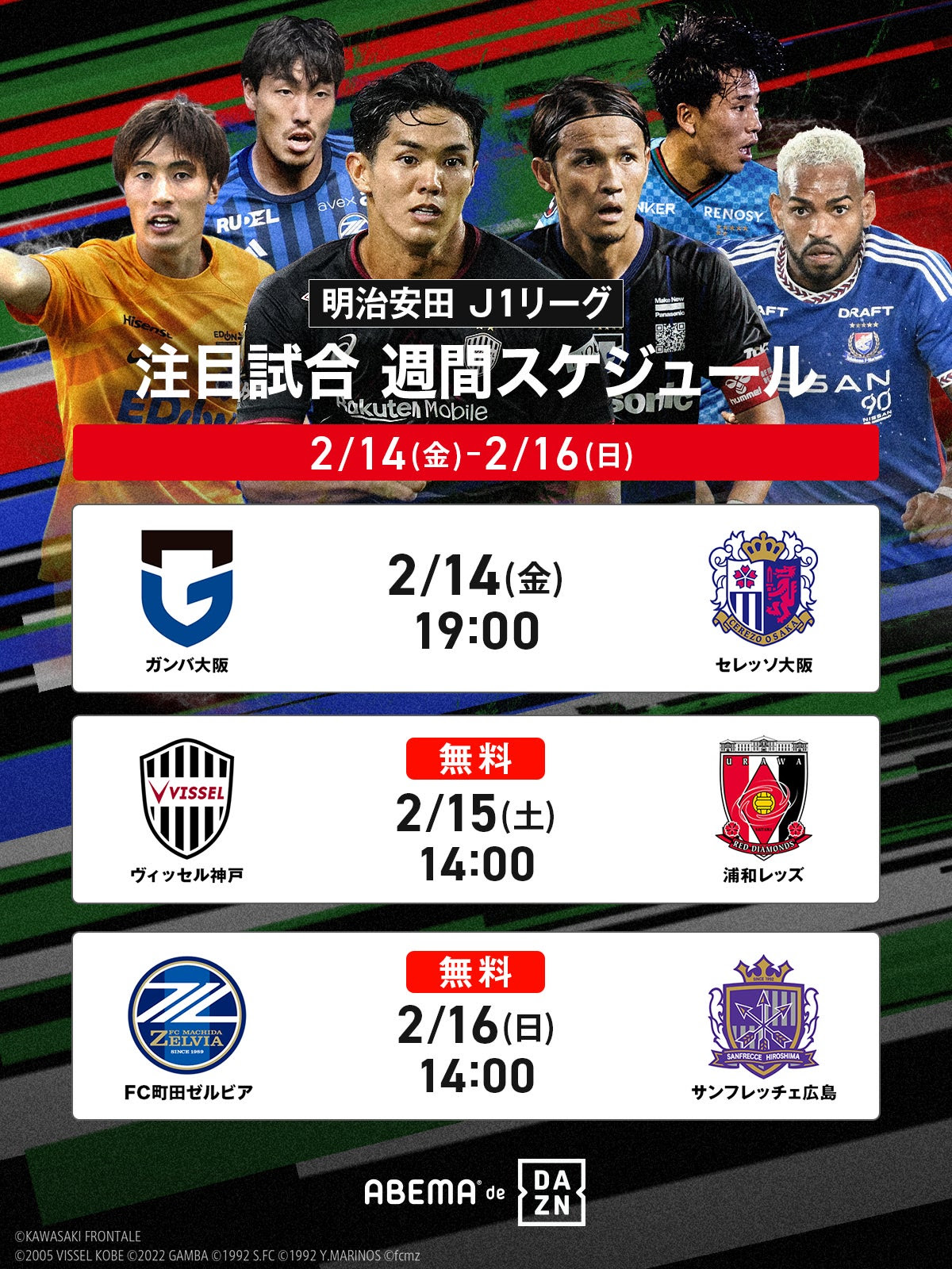 新しい未来のテレビ「ABEMA(アベマ)」とスポーツ・チャンネルDAZNが展開する「ABEMA de DAZN」では、2025年2月14日(金)より開幕する2025明治安田J1リーグの開幕節において、『ヴィッセル神戸vs浦和レッズ』を2月15日(土)午後2時より無料生中継いたします。