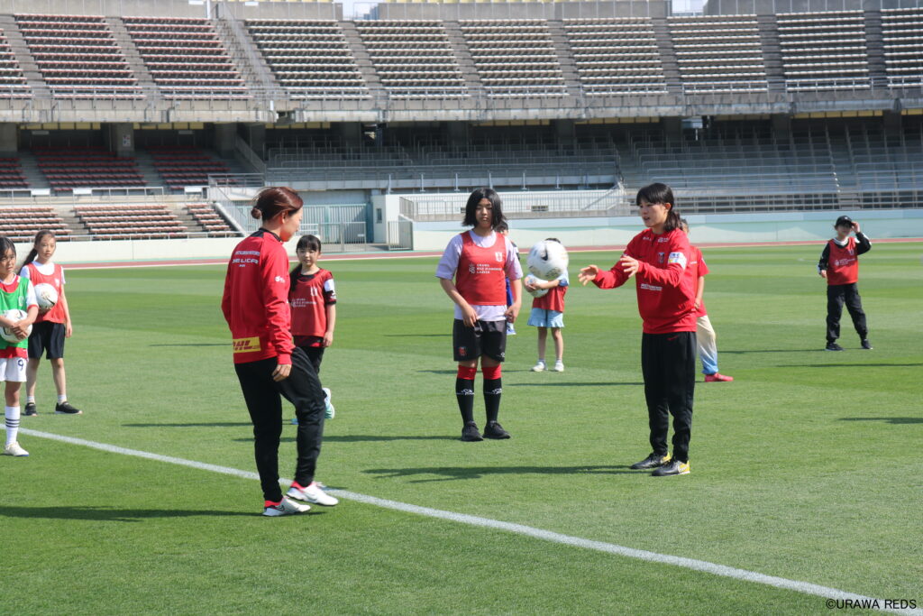 栗島選手は「今日は近い距離で子どもたちと話をすることができたので、直接会った選手が試合のピッチで頑張っている姿を見ると刺激を受けてくれるのではないかと思いました」とコメント。さらに、「浦和レッズのユニフォームを着てくれている子が何人もいて、やはり浦和レッズやレッズレディースは子どもたちの夢なんだとあらためて思いました。浦和レッズを背負っている責任と誇りを持って、子どもたちに夢を与えられるよう頑張ります」と力強く言った。