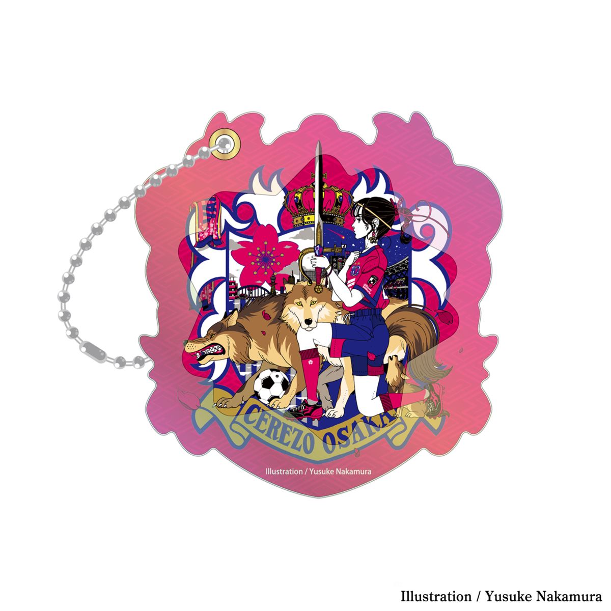 「僕も暮らす大阪がホームグラウンドのサッカーチーム『セレッソ大阪』のエンブレムを元にアレンジしたイラストを描かせていただきました。狼はロビーとマダム・ロビーナと色は同じですが子狼も合わせ、目的は同じだけど多様なセレッソのサポーター層を表現しています。一緒に戦う12人目のメンバーであるサポーターの皆さまにとって、戦いの夜が明けて勝利の光る朝が来ますように」