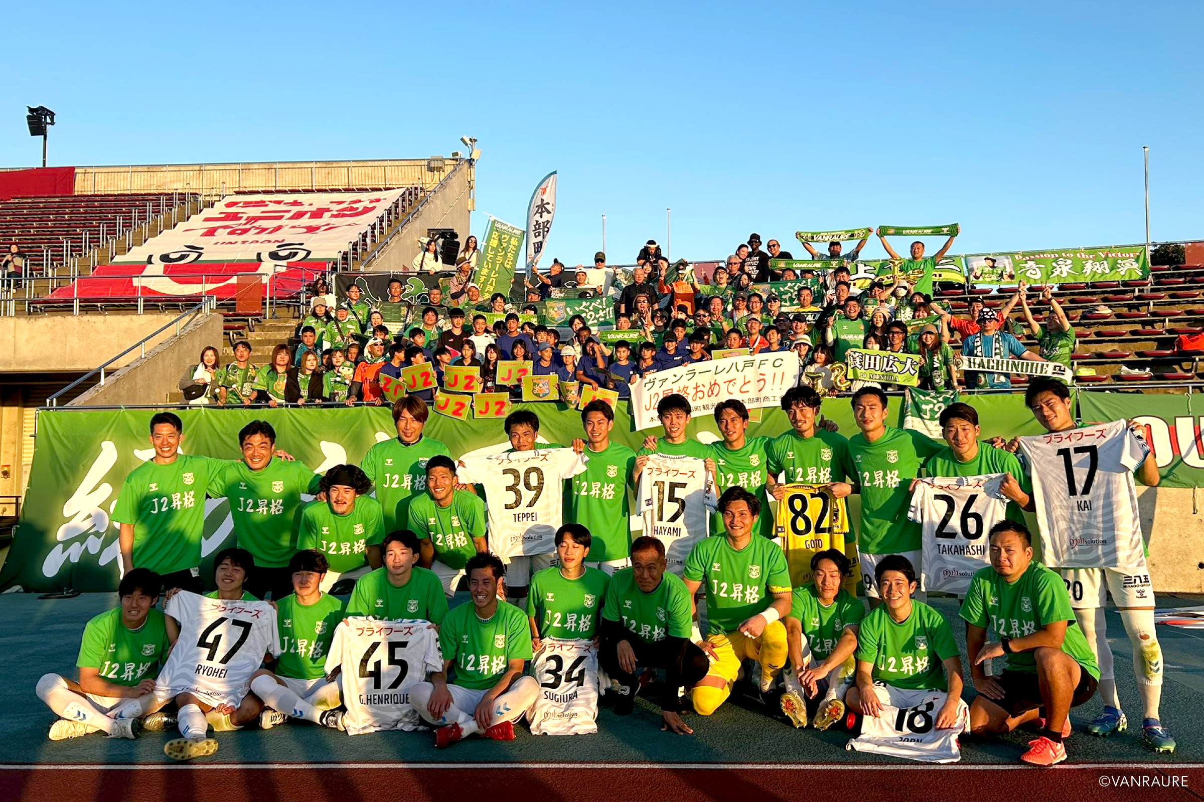 昨年11月23日、HOME最終節にリリースした「明治安田Jリーグ百年構想リーグ」ユニフォームは、ヴァンラーレ八戸が誕生してから20年になるアニバーサリーイヤーを記念した1枚。発表した試合では勝利を飾れませんでしたが、最終節に初めてとなるJ2昇格を決めました。