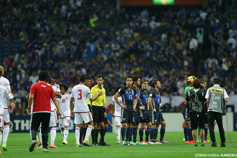 終盤は吉田を前線に上げてパワープレーに出る場面もあったが、UAEのゴールを割ることができない。90分、エリア手前右で本田からパスを受けた原口が、キックフェイントから左足でシュートを狙ったが、ボールは枠を大きく外してしまった。日本は最後まで同点に追いつくことができず、1-2で初戦を落とした。日本がW杯最終予選のホームゲームで敗れるのは、1997年9月28日の韓国戦以来約18年11カ月ぶりのことだった。