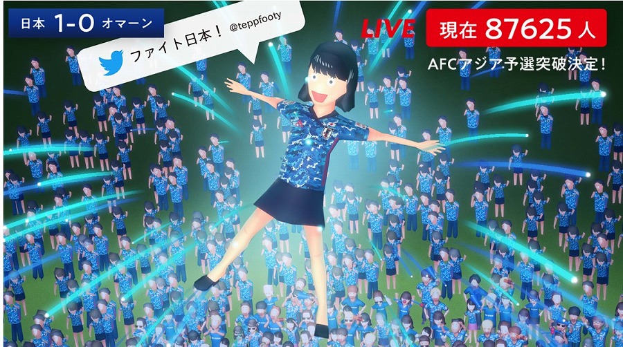 「新しい応援」の提供を目指し、AFCアジア予選期間のホーム戦全5試合を通じて、10万アバター集まることを目標にしています。