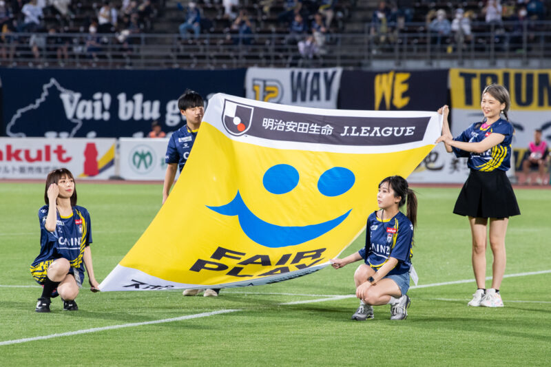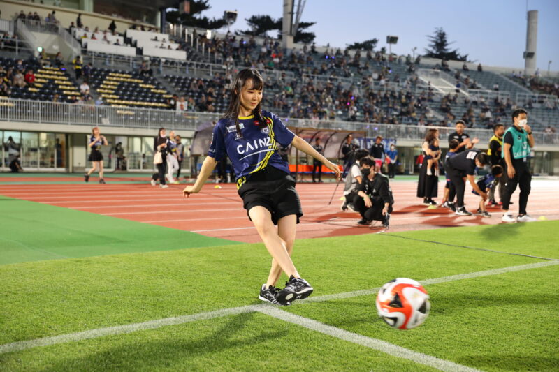 フラッグベアラーを担当した3人のライバーたちは、「楽しかったです! リスナーの皆さん、これからもよろしくね!」(藤倉美咲さん)、「初めてサッカーのスタジアムに来させてもらいました。ありがとうございました!」(かたよさん)、「10年以上ぶりにサッカーのピッチに来ることができました。リスナーさんのお陰です」(みたらしさん)と、それぞれセレモニーを振り返った。