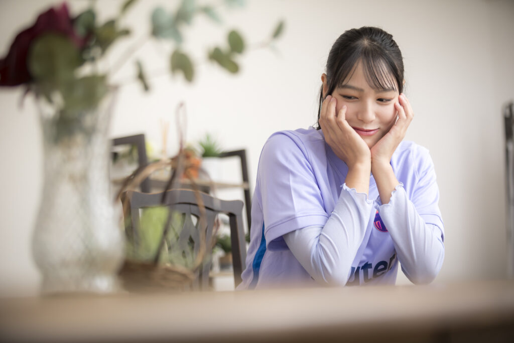 「パッと見た時に、遊びがあってかわいいな、垢ぬけたデザインだなって思いました。淡い色味やクラブエンブレムのグラデーション加工など、令和感を感じるというか(笑)。サッカーのユニフォームは赤・青・黄色系の派手なイメージがあったので、思った以上にかわいくて驚きましたね。もうすぐ誕生日で30歳になるので、20代最後の私の姿を素敵に残せたかなと思います(笑)」