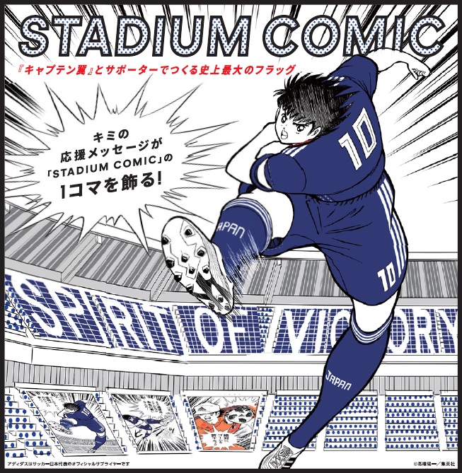 本プロジェクトは、人気サッカーコミック「キャプテン翼」のキャラクターイラストに、日本全国のサポーターの応援メッセージを書き込み、スタジアムに掲げる巨大なスタジアムコミックを制作。キャプテン翼の作者である高橋陽一先生が「サッカー日本代表を本気で強くするために、世界一になる夢を創造し、サポーターと一緒に共有したい」というプロジェクトに賛同し、特別なイラストを提供する。日本代表新ユニフォーム「勝色(かちいろ)」を着た人気キャラクターたちに乗せた応援メッセージが日本代表を鼓舞する。プロジェクトは4月14日の富山県会場を皮切りに、これまで9会場で開催。多くのサポーターたちがフラッグにメッセージを書き込み、日本代表を応援している。