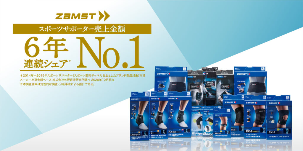 ZAMSTは、医療メーカーとして整形外科向けの製品を46年にわたり開発・製造する日本シグマックス株式会社が1993年に設立したスポーツ向けサポート・ケア製品ブランドで、スポーツサポーター市場売上金額6年連続No.1※1に認められています。