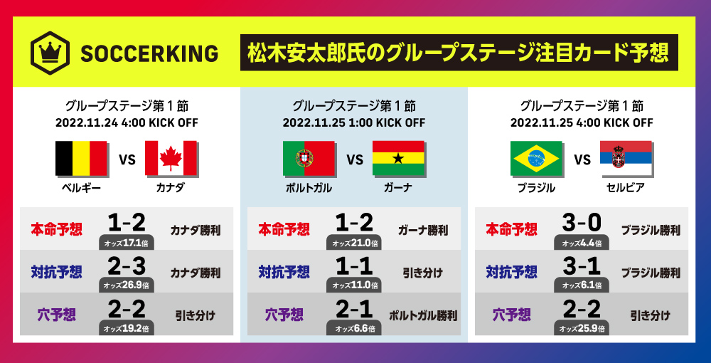 また、他にも注目するグループステージの試合を3試合ピックアップ。“穴党”だという松木さんの意外なスコア予想とは?