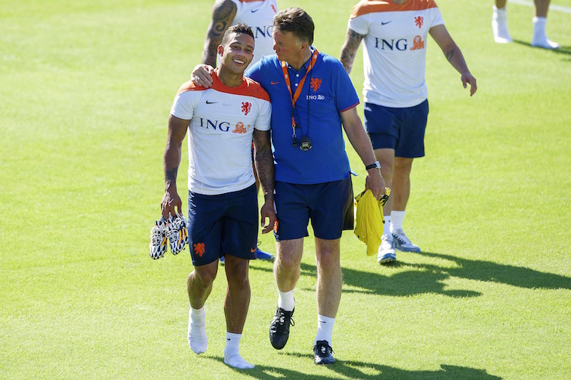 ブラジルW杯ではファン・ハール監督(右)の下でプレーしたデパイ(左) [写真]=VI-Images via Getty